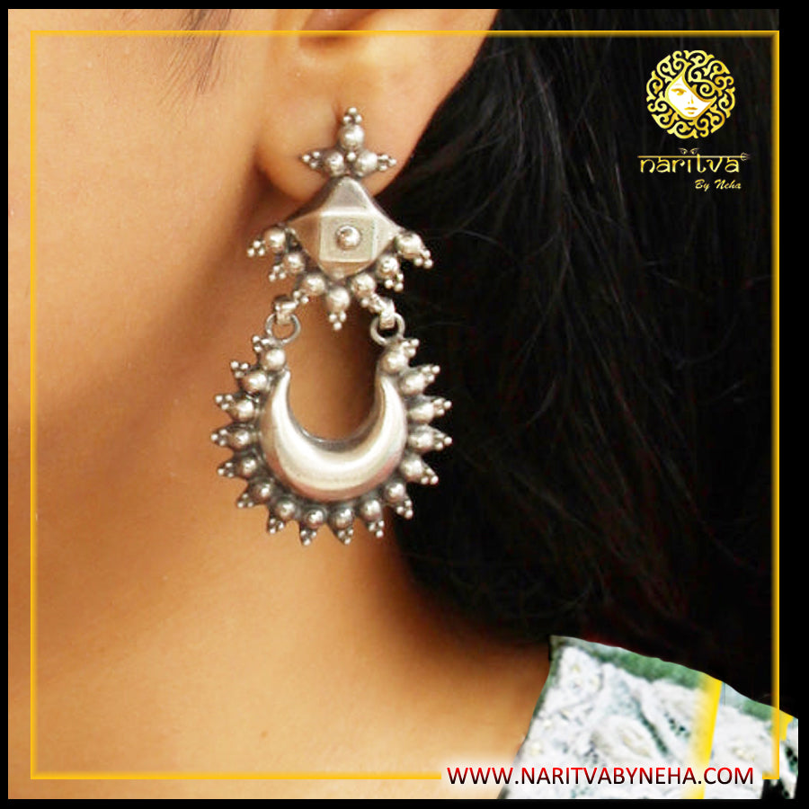 The Suryakiran Chandbali earrings feature a classic crescent shape enhanced with intricate sun rays motifs on the sides, symbolizing radiance and energy. Expertly crafted to blend traditional design with contemporary elegance, these earrings offer a refined statement piece suitable for both festive occasions and everyday wear. Their detailed artistry highlights the rich cultural heritage while providing a versatile accessory that complements a wide range of outfits.